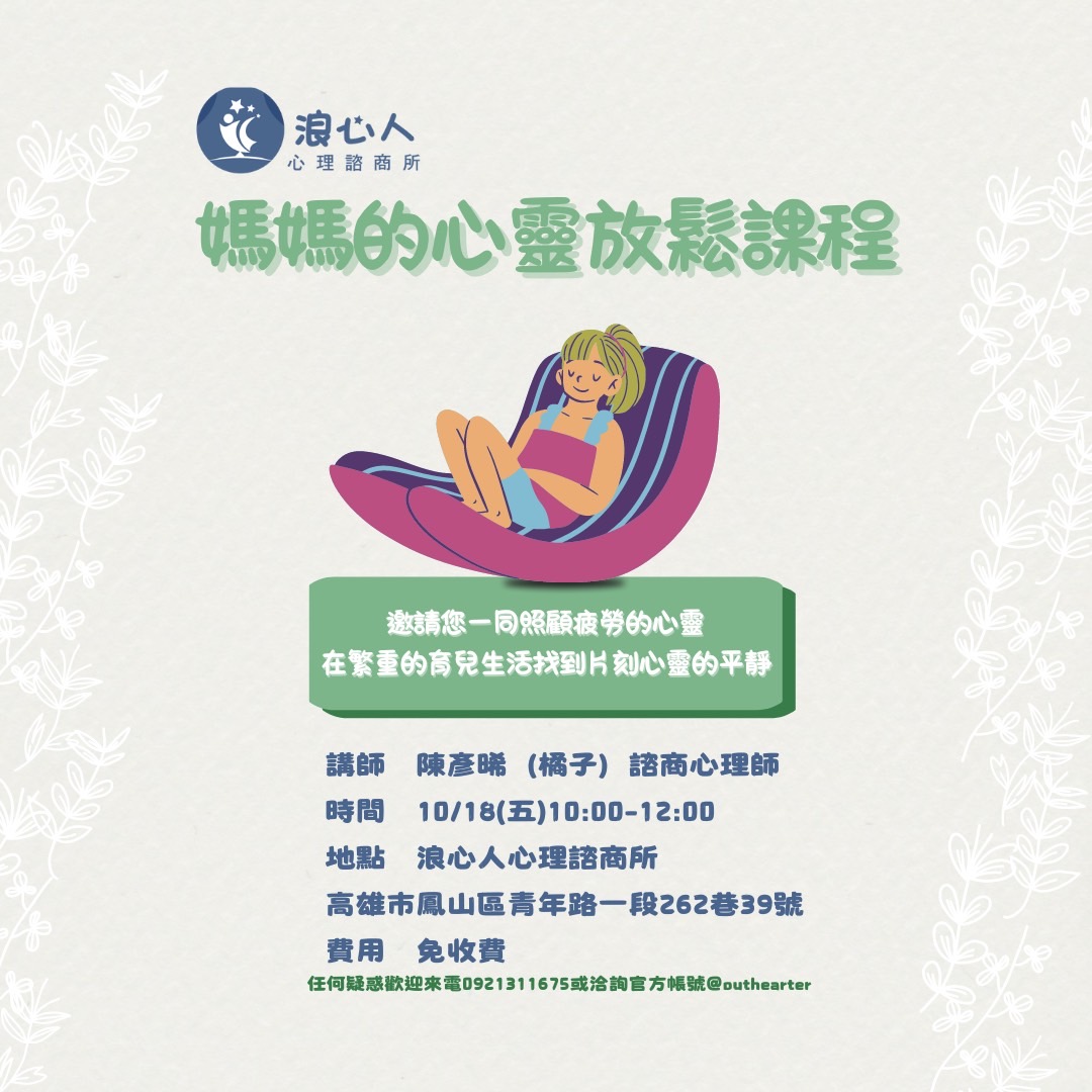 (活動截止)十月浪心免費講座【媽媽的心靈放鬆課程】